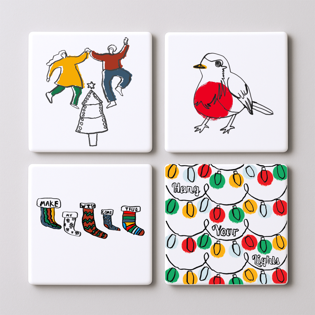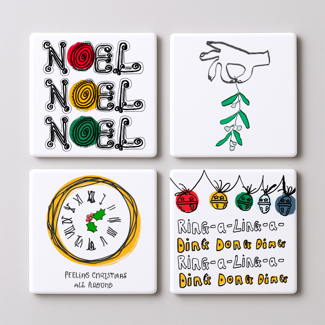Created to compliment our 2025 musical themed Christmas Cards, they come in 2 different design sets of 4 hand pressed ceramic coasters. They make the ideal gift for anyone who loves a bit of Christmas spirit around the home - and also values their furniture! Also great as teacher gifts and Secret Santa!